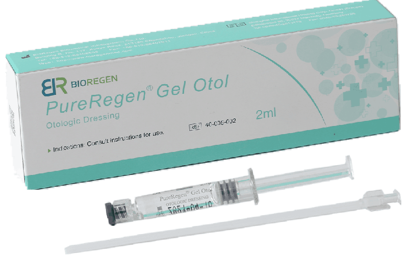 Opatrunek PureRegen® Gel Otol to sterylny, niepirogenny, przezroczysty, lepkosprężysty, degradowalny i fragmentaryczny żel składający się z usieciowanych cząsteczek hialuronianu pochodzenia niezwierzęcego, stosowany jako opatrunek otologiczny lub stent u pacjentów po uchu środkowym i zewnętrznym chirurgia kanałowa.